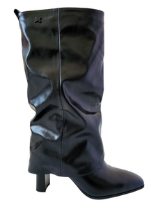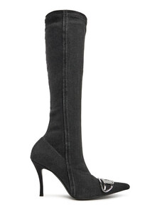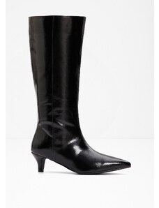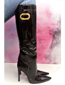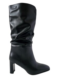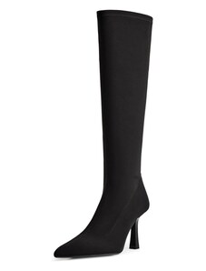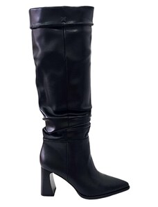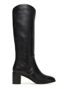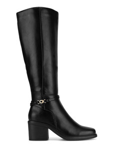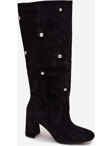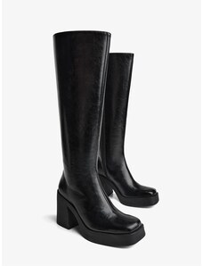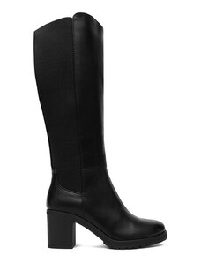 BASIC Čierne dámske vysoké čižmy na podpätku, podpätok 4 cm ZY1087