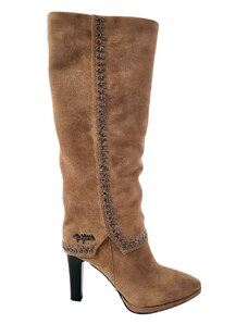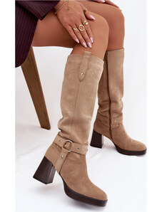 Kesi Béžové dámske čižmy z eko semišu na ihličkovom podpätku Phelin