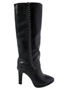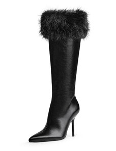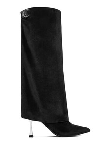 Kesi Čierne dámske zateplené čižmy s vysokým podpätkom a ozdobnými detailmi Lucinda