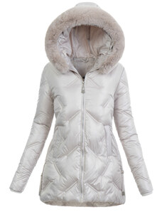 Perso Smotanová dámska ľahká prešívaná bunda s kapucňou BLE 251046 F - Ecru
