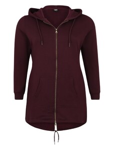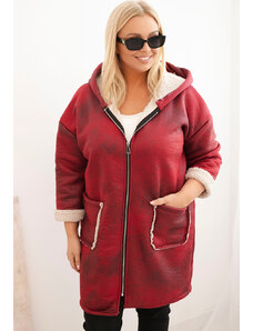 Kesi Vínový dámsky Plus Size baránkový kabát s kapucňou a vreckami