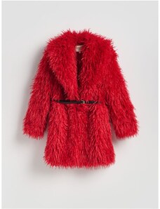BASIC Dlhší červený kabát Merve s teddy efektom TW-PL-BI-5220.63-dark red