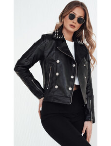 BASIC Čierna koženková bunda s hrotmi a ozdobnými gombíkmi TRUCCO TY4178