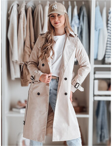 BASIC Smotanový dlhý trenčkot s pásikom SLIMFOTA NY0745