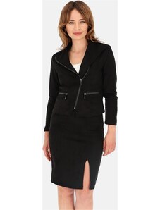 Perso Čierny dámsky elegantný krátky kabát s vreckami BLE 251010 F - Black