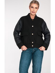 FIGL Čierny dámsky bomber s prešívanými rukávmi M1097 Black