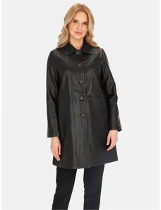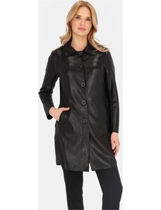 Perso Čierny dámsky koženkový kabát s golierom BLE 252369 F - Black
