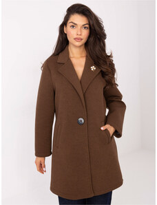 RUE PARIS Hnedý dámsky krátky kabát s brošňou IT-PL-FL8153.60-brown