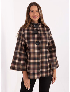 ITALY MODA Hnedý dámsky károvaný oversize kabát -IT-PL-31820-1.26-camel