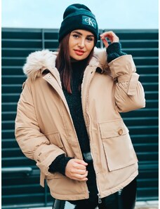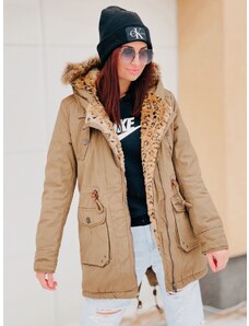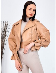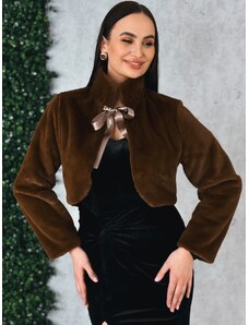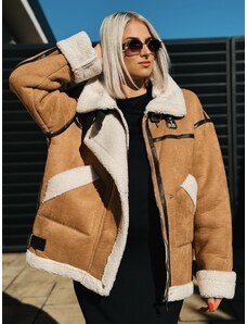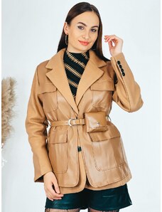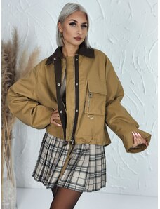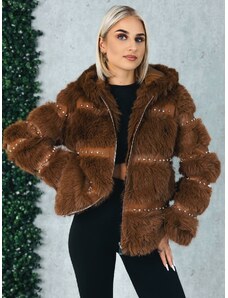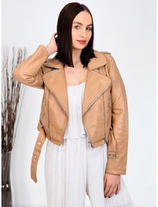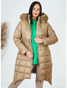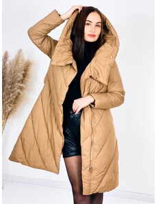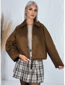 Webmoda Dámska hnedá prešívaná vetrovka s opaskom a kabelkou so zlatou reťazou - M/L