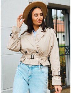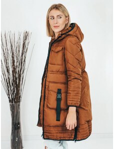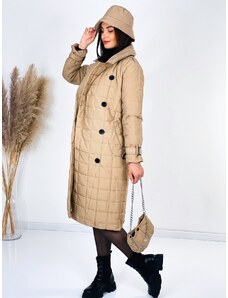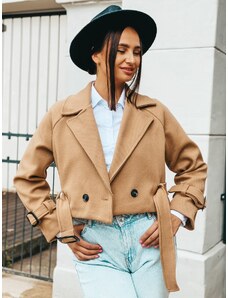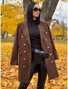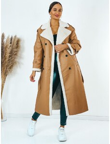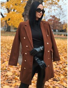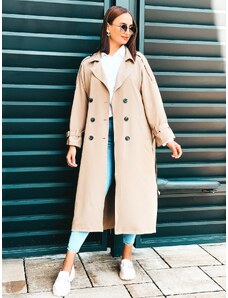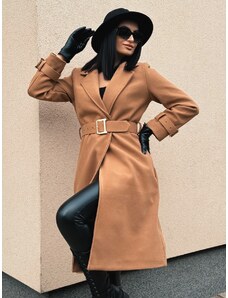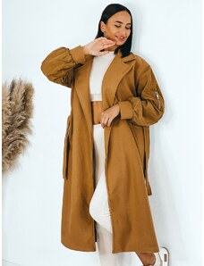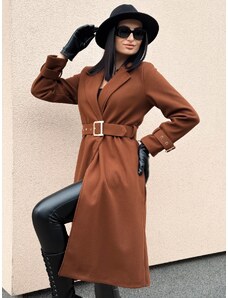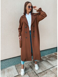Webmoda Dámsky dlhý hnedý trenčkot s opaskom a gombíkmi - UNI
