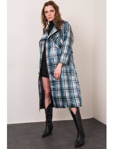 ITALY MODA Dámsky károvaný oversize kabát IT-PL-31820-1.26-blue