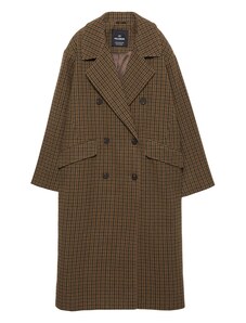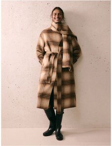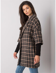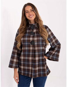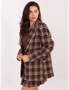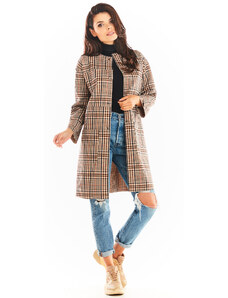 ITALY MODA Hnedý dámsky károvaný oversize kabát -IT-PL-31820-1.26-camel