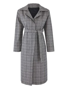 MladaModa Dlhý károvaný kabát Yasmin s opaskom čierny+biely