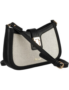 Peterson Béžovo-černá dámská crossbody kabelka z kůže a plátna PTN CAN-02
