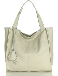 MARCO MAZZINI Taupe dámska kožená shopper kabelka (v234g)