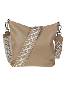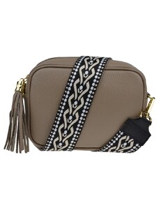 Hnedá kožená talianska crossbody kabelka Reni Grande Taupe s prídavným pruhom NovaKabelka.sk