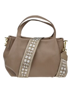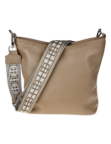 Hnedá kožená talianska crossbody kabelka Reni Grande Taupe s prídavným pruhom V NovaKabelka.sk