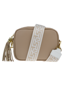 Béžová kožená talianska crossbody kabelka Bala Beige s prídavným pruhom II NovaKabelka.sk