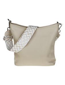 Béžová kožená talianska crossbody kabelka Reni Grande Beige s prídavným pruhom III NovaKabelka.sk