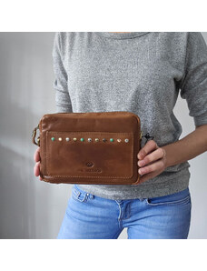 Hnedá kožená talianska crossbody kabelka Bala Cappuccino s prídavným pruhom I NovaKabelka.sk
