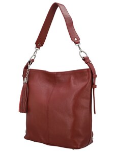 Delami Vera Pelle Módna dámska kožená kabelka na rameno Sherica, tmavo červená