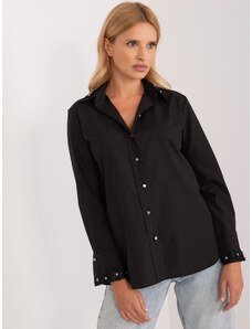 BASIC Čierna bavlnená košeľa s ozdobnými gombíkmi LK-KS-509574.71-black