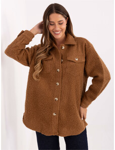 MladaModa Košeľová boucle bunda zo zapínaním na gombíky model 70985 farba camel