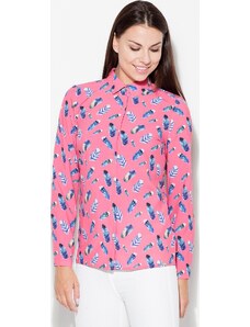KATRUS Ružová košeľa s motívom peria K428 Pattern 51