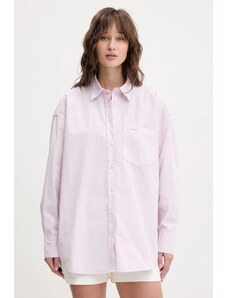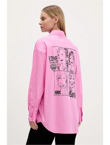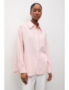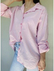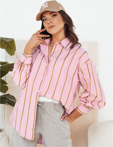 BASIC Ružová pruhovaná oversize košeľa TENESI DY0379