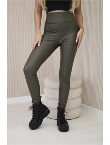 MladaModa Push-up legíny z ekokože model TR1878 farba khaki