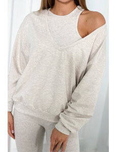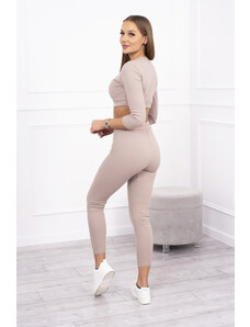 K-Fashion 3-dielny set blúzka + top + legíny béžová melanž