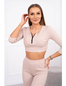 K-Fashion 3-dielny set blúzka + top + legíny svetlo béžová