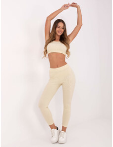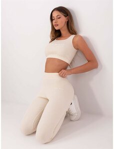 FOR FITNESS Béžová dámska rebrovaná súprava topu a legín 359-KMPL-011.20-beige
