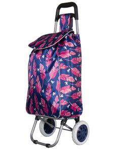 Nákupná taška na kolieskach METRO ST-01F - modrá/ružový list