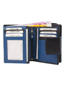 Impex Malá dámska peňaženka s 11 slotmi na karty - koža nappa - čierna/modrá