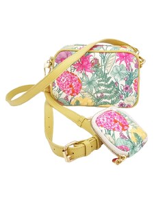 DIANA & CO Kvetinová dámska taška s chlopňou horčicovo žltá