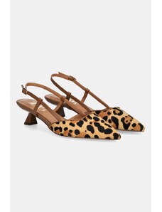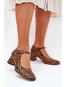 Kožené Lodičky Na Podpätku V Leopardom Vzore Laura Messi 2936 Hnedé