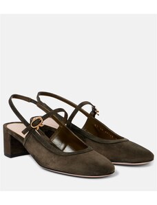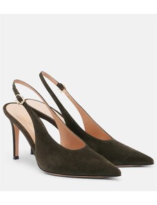 Gianvito Rossi Leather-trimmed suede slingback pumps