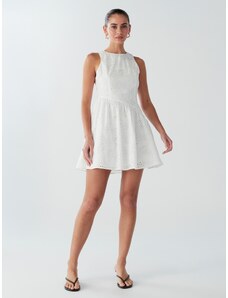 RELEVANCE Biele mini šaty s nápisom a gumou v páse RV-SK-6589.25-white
