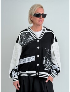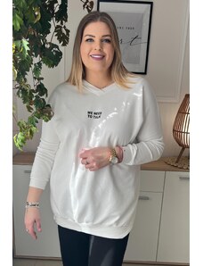 RELEVANCE Smotanová asymetrická tunika s nápisom RV-TU-7505.15-ecru