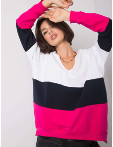 RUE PARIS Dámska voľná bielo-čierno-fuchsiová mikina RV-BL-5972.07-white-black-fuchsia