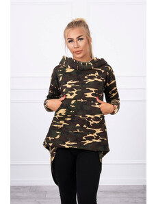 MladaModa Maskáčová mikina s predlženou zadnou časťou model 9119 farba khaki+hnedá