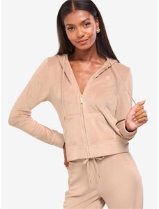 RUE PARIS Béžová dámska dlhá mikina na zips RV-BL-7350.28-beige
