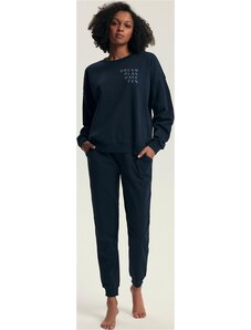 Henderson Ladies Tmavomodré dámske dlhé pyžamo s nápisom 43705 Delancy dł/r S-3XL