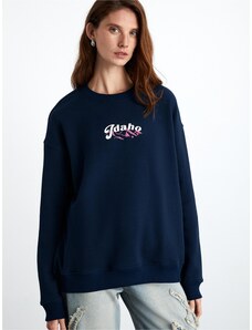 BASIC Tmavo modrá dámska mikina s nápisom EM-BL-651 / 1.21X-blue