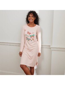 Krátka nočná košeľa s dlhými rukávmi ružová pudrová 054 Blancheporte