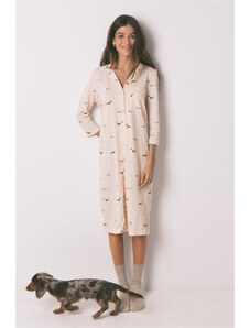 Dámska froté nočná košeľa 70231-144-6 béžová-potlač - Pastunette