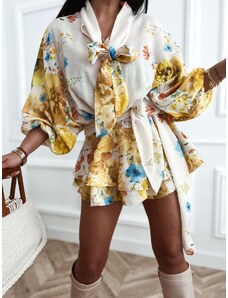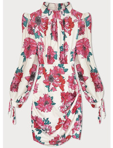 MADE IN ITALY Krátke šaty so stojacím golierom kvetinové ecru-ružové (A1080)