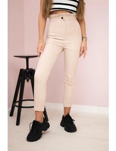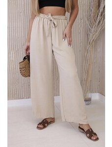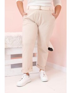 MladaModa Oversize nohavice s opaskom model 52293-4 svetlé béžové
